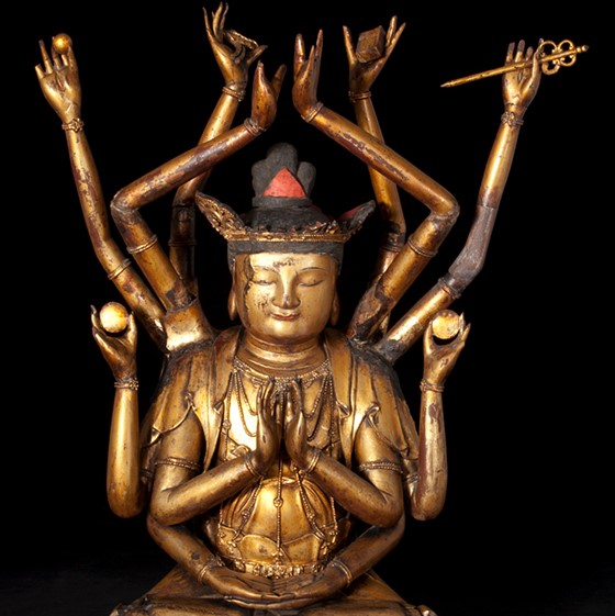 In our version of the story, the Buddha of Boundless Compassion Amitabha (Amida Buddha – these two are tight) sees what has just happened and wants to help, so he gives here 11 heads. With this gift she is now able to listen deeply, see more possibilities of how to help, but now she finds herself overwhelmed by all the pleas for help and her two arms shatter.